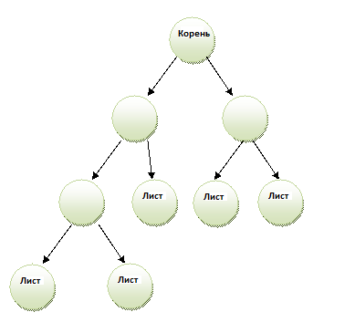 Дерево - это стрктура данных, в которой данные размещаются в виде дерева, состоит из вершин (англ. Node) и дуг (англ. Edges), которые соединяют вершины (указатели). Вершины, которые соединены дугами с вершиной расположенной выше называются детьми (англ. Childs), а расположенная выше вершина в этом случае является родителем (англ. Parent). Самая верхняя вершина - это корень (англ. Root). Вершину, у которой нет детей, называют листом (англ. Leaf).