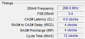 Обычно эти параметры указаны в спецификации модуля памяти в виде последовательности значений разделяемых через «чёрточку» (например, 4-4-4-12). Эти числа зафиксированы производителем в специальном чипе SPD (Serial Presence Detect), который имеется в любом модуле памяти, и считываются при конфигурации автоматически при запуске компьютера в ходе тестирования POST. Для распознования параметров памяти имеются различные приложения. Одним из них, например, является CPU-Z (http://www.cpuid.com/). Выборка параметров памяти приведена на данном рисунке.