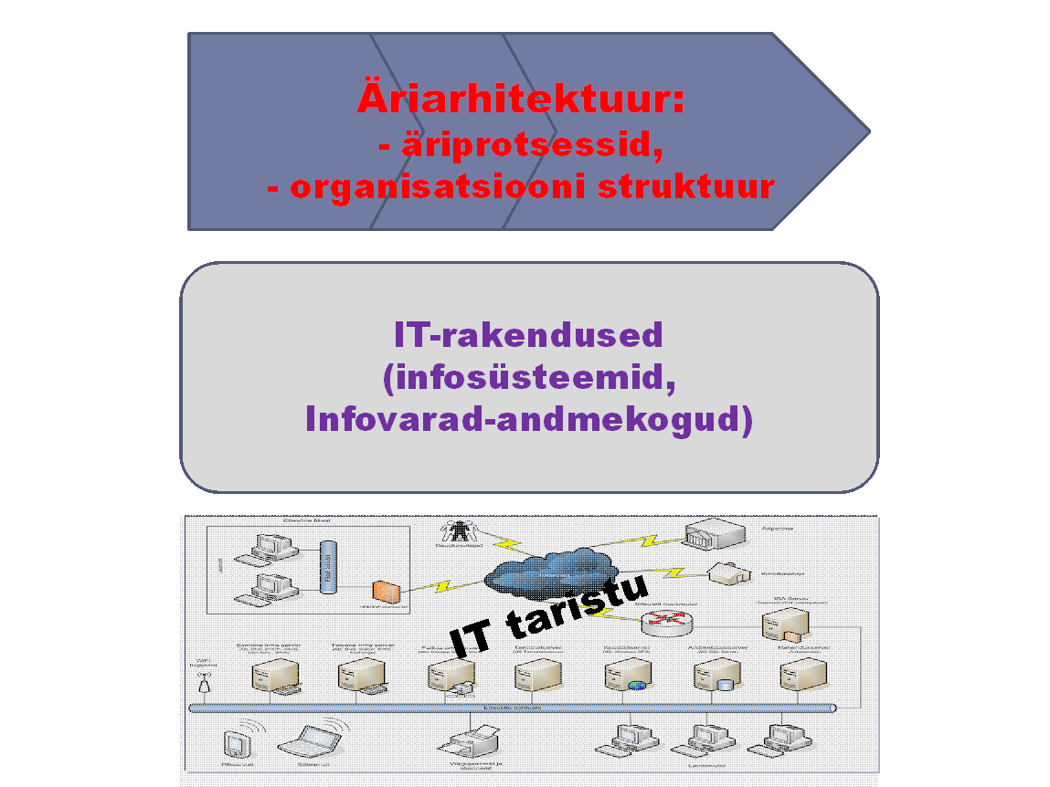 Joonis 4-8. Ettevõtte arhitektuur ja rakenduste koht selles (Autor: Ants Sild, Baltic Computer Systems AS, 2011)