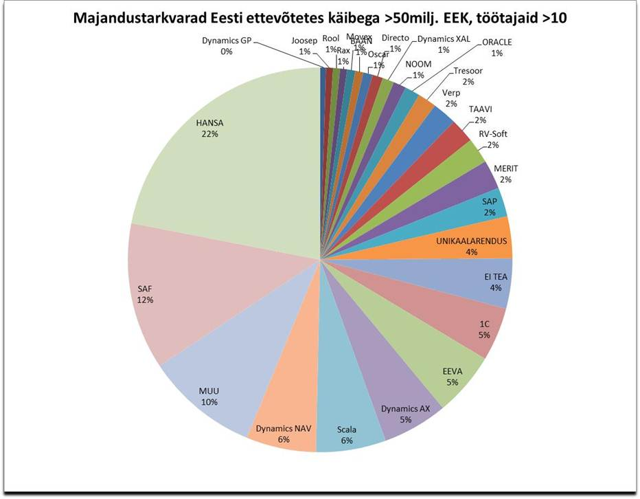 Joonis 4-11. Majandustarkvarad Eesti ettevõtetes käibega üle 50 miljoni krooni ja töötajate arvuga üle 10. Allikas: Turuuuring, Microsoft Eesti, 2009 (Autor Fred Viidul)