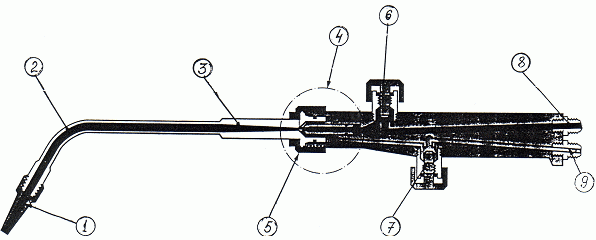 Reduktorist tulev hapnik voolab läbi nipli, toru ja ventiili (5) injektori (4) düüsi. Düüsist suure kiirusega väljudes tekitab ta atsetüleenikanalis hõrenduse, mille toimel imetakse atsetüleen läbi nipli (9), toru ja ventiili (6) segukambrisse (3). Selles kambris hapnik ja atsetüleen segunevad, moodustades põlevsegu. Suudmikust väljuv põlevsegu süüdatakse ning tekib keevitusleek. Gaaside voolamist põletisse reguleeritakse hapnikuventiiliga (6) ja atsetüleeniventiiliga (7), mis asuvad põleti käepidemel. Vahetatavad otsikud kinnitatakse põleti käepidemele survemutriga.