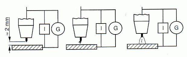 1. elektroodi lähendamine detailile umbes 2 mm kaugusele;