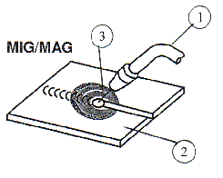 1. Keevituspõleti – сварочная горелка 2. Põhimetall – основной металл 3. Elektrooditraat – проволочный электрод |